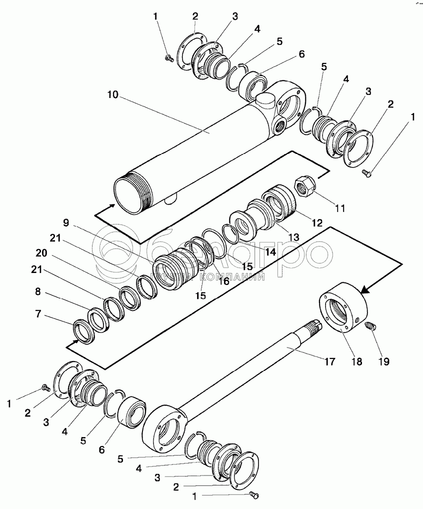Каталог запасных частей к технике: МТЗ 922.5. Гидроцилиндр Ц63 (63x30-200)