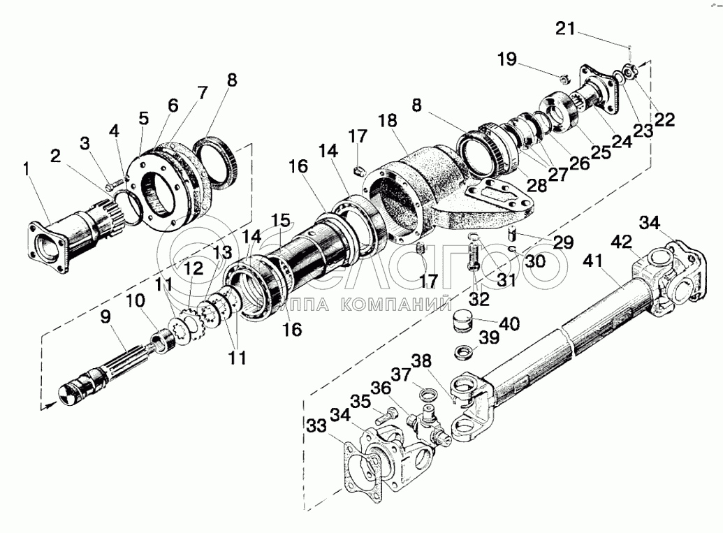 | 72-2203010-А2 Вал карданный МТЗ-82 переднего моста (4 отверстия) L=626 мм SPILE |