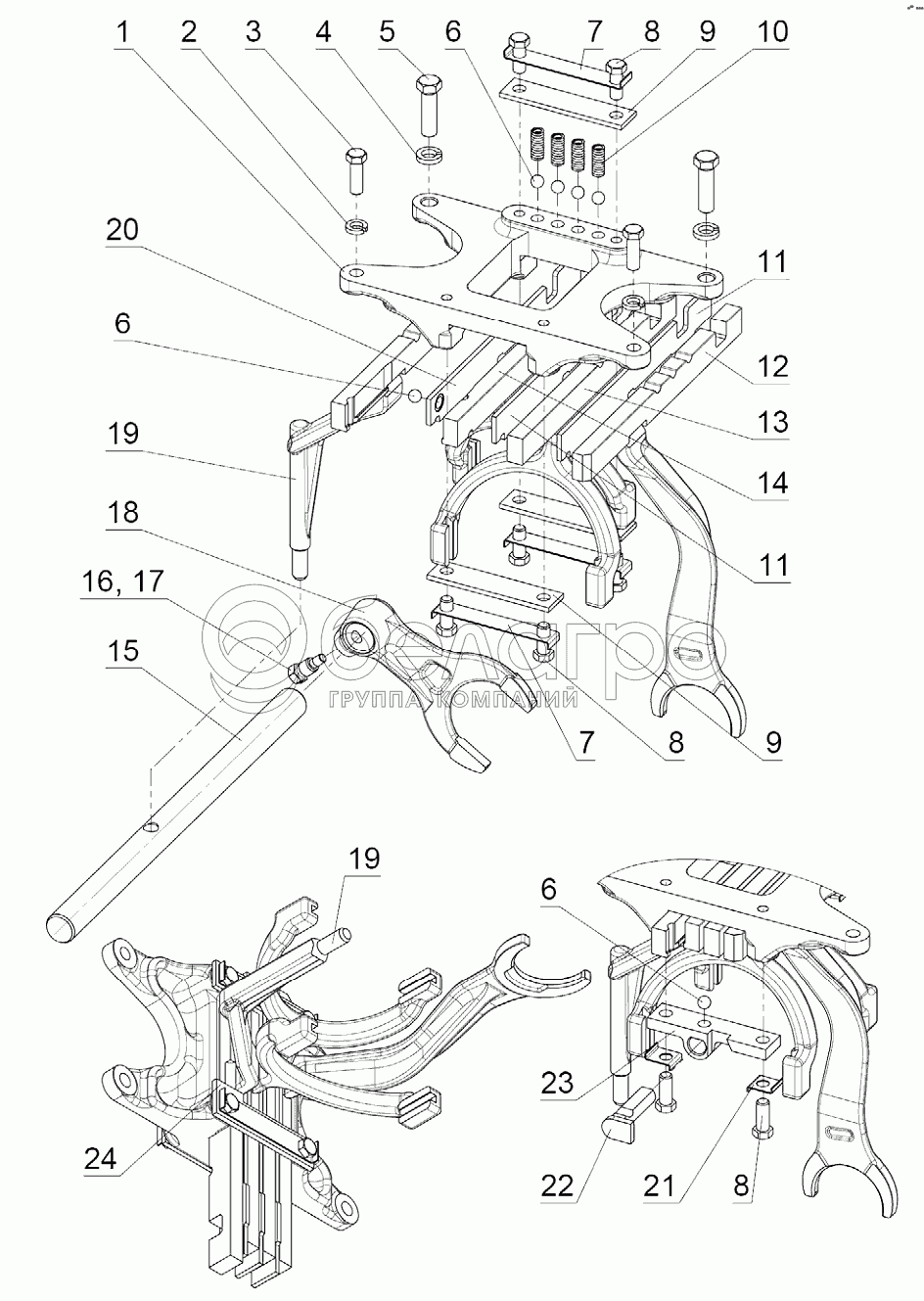 Каталог запасных частей к технике: МТЗ 922.5. Механизм управления синхронизированной КП. Корпус вилок.