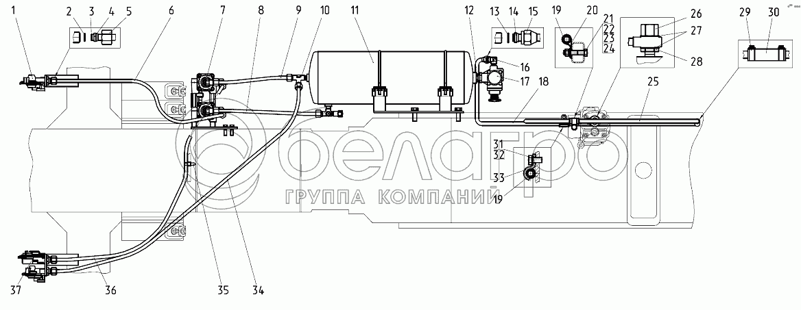 Каталог запасных частей к технике: МТЗ 922.5. Пневмопривод 922-3506705/-01