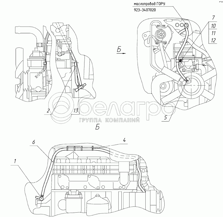 Каталог запасных частей к технике: МТЗ 922.5. Трасса шлангов отопителя 822-8101020