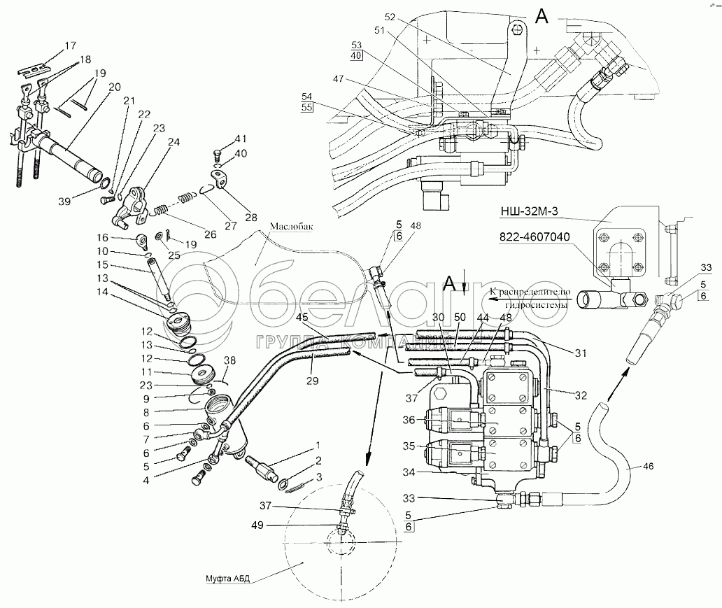 Каталог запасных частей к технике: МТЗ 922.5. Управление задним ВОМ, гидропривод управление АБД и ВОМ