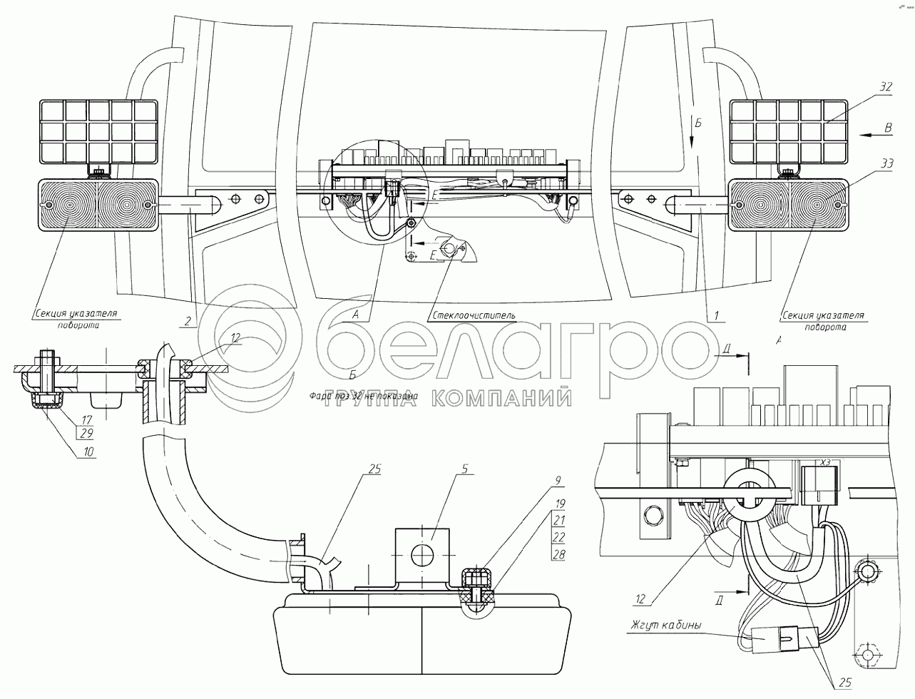 Каталог запасных частей к технике: МТЗ 922.5. Установка фонарей передних