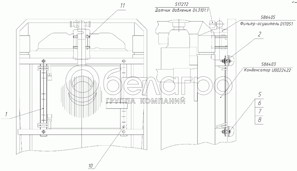 Каталог запасных частей к технике: МТЗ 922.5. Установка конденсатора 1025-8112010