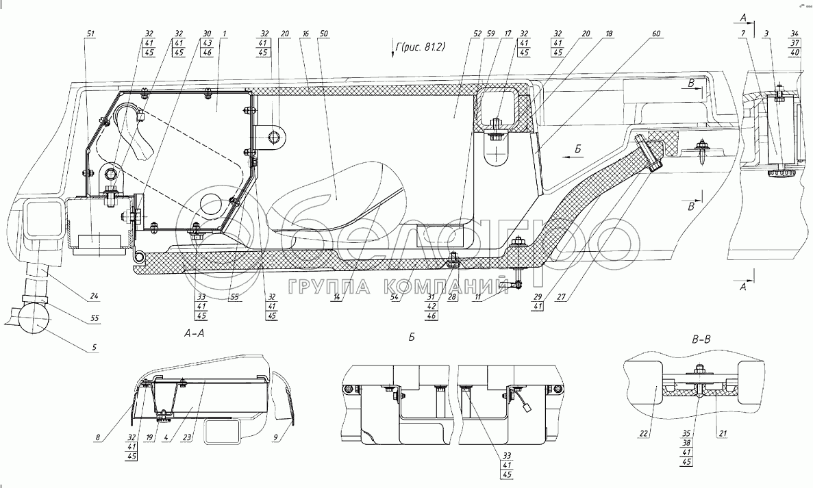 Каталог запасных частей к технике: МТЗ 922.5. Установка отопителя 921-8100005