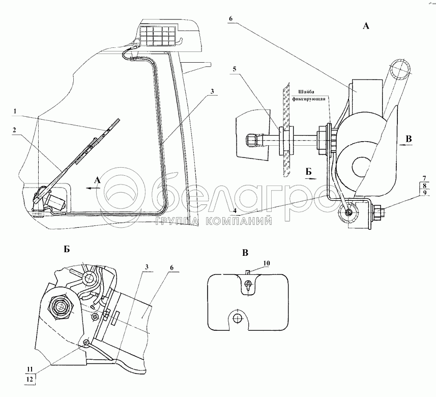 Каталог запасных частей к технике: МТЗ 922.5. Установка стеклоочистителя заднего