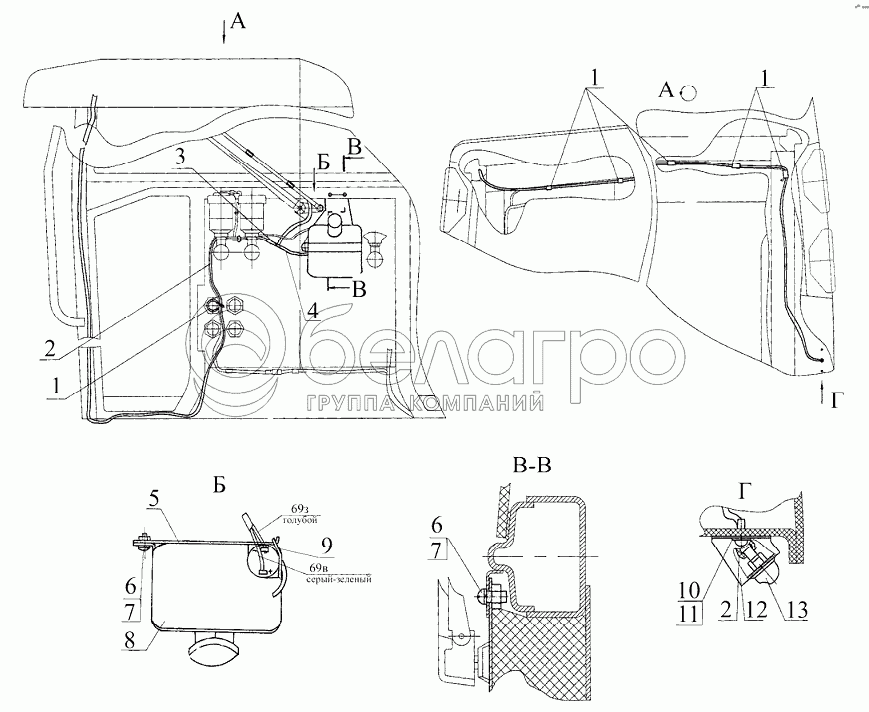 Каталог запасных частей к технике: МТЗ 922.5. Установка стеклоомывателя