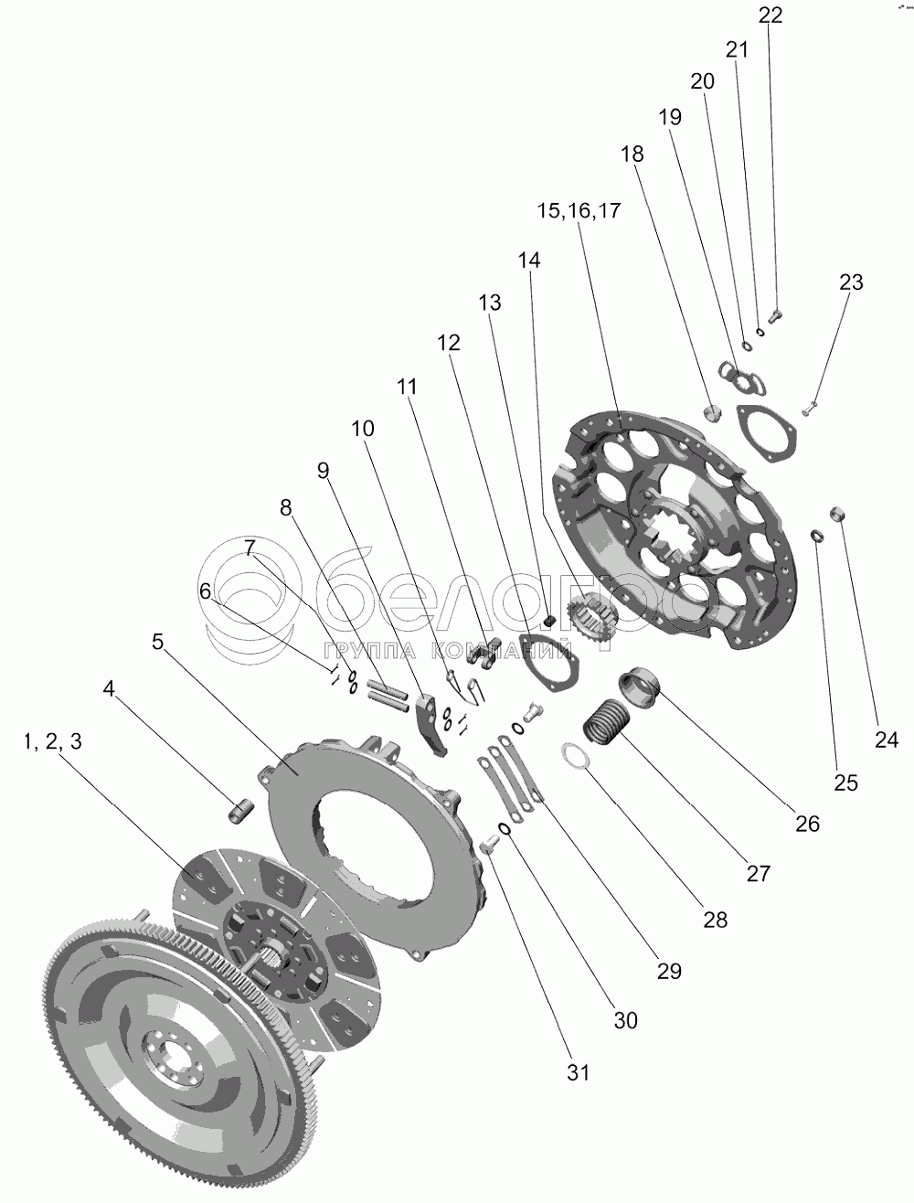 Каталог запасных частей к технике: МТЗ 922.5. Установка сцепления 240-1005009-06