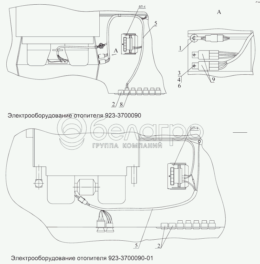 Каталог запасных частей к технике: МТЗ 923.4. Электрооборудование отопителя 923-3700090, 923-3700090-01