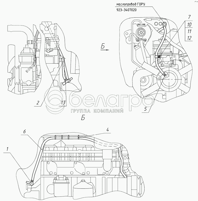 Каталог запасных частей к технике: МТЗ 923.4. Трасса шлангов отопителя 822-8101020