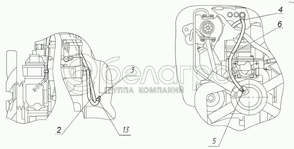 Каталог запасных частей к технике: МТЗ 923.4. Трасса шлангов отопителя 822-8101020-01