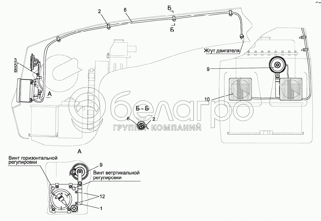 Каталог запасных частей к технике: МТЗ 923.4. Установка фар дорожных