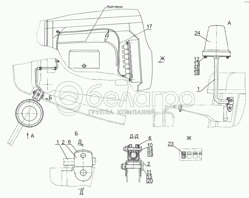 Каталог запасных частей к технике: МТЗ 923.4. Установка маяка сигнального