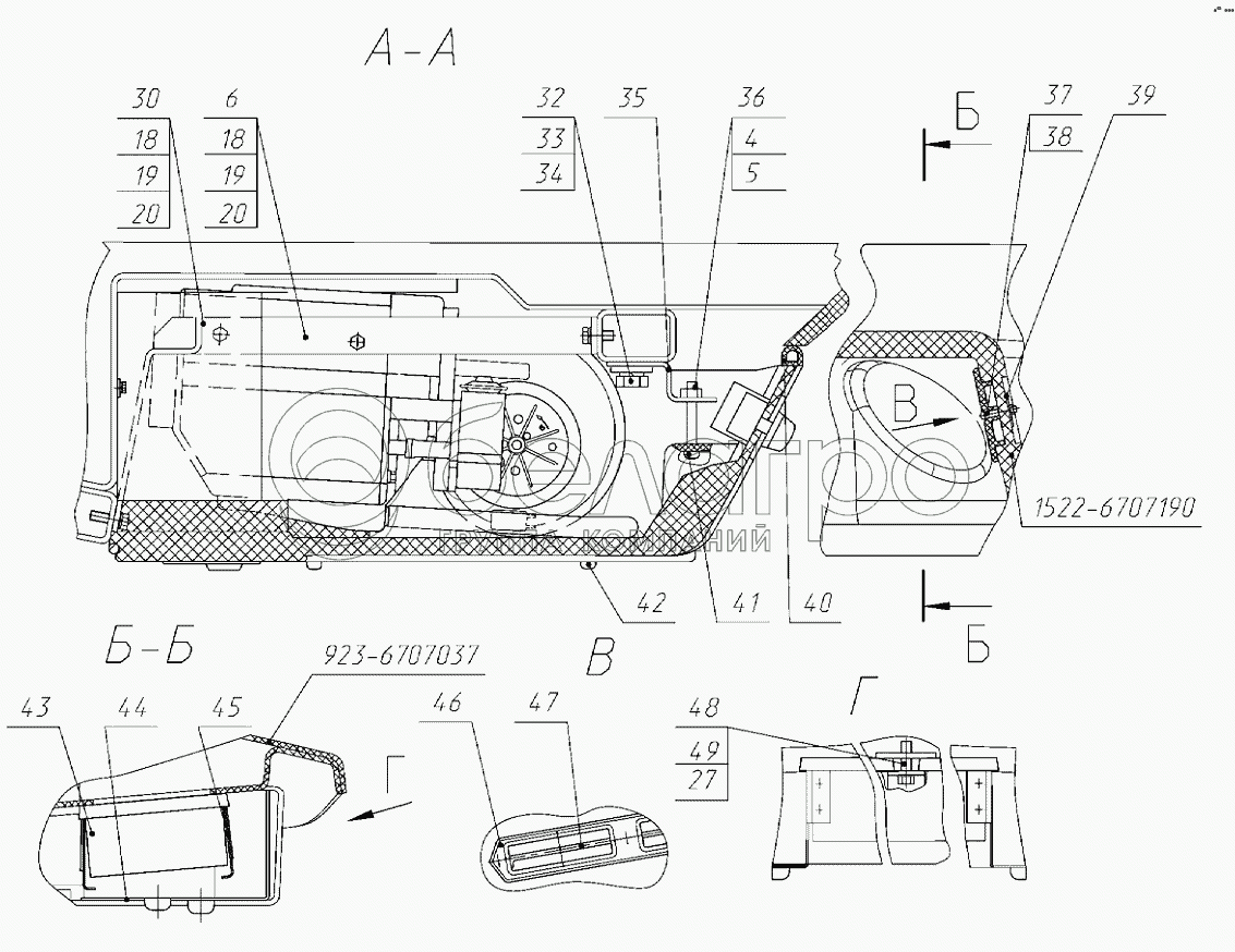 Каталог запасных частей к технике: МТЗ 923.4. Установка отопителя-охладителя