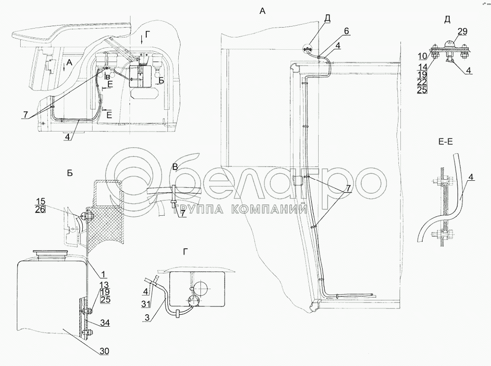 Каталог запасных частей к технике: МТЗ 923.4. Установка стеклоомывателя