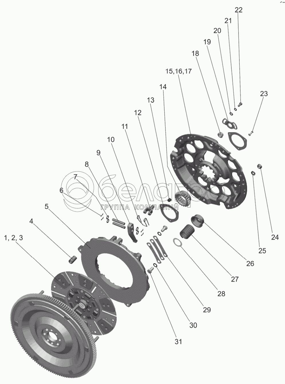 Каталог запасных частей к технике: МТЗ 923.4. Установка сцепления 240-1005009-06
