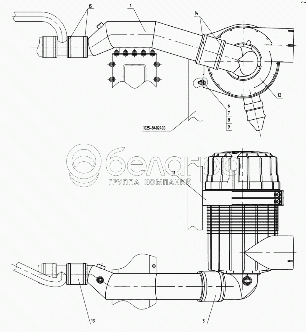 Каталог запасных частей к технике: МТЗ 923.4. Установка воздухоочистителя