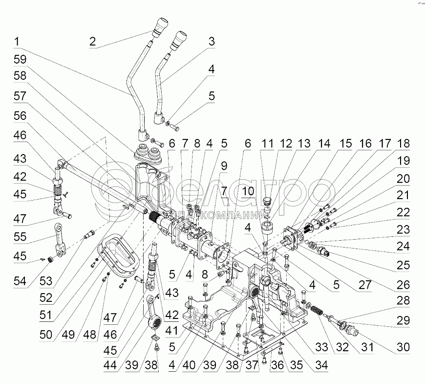 Каталог запасных частей к технике: МТЗ 923.5. Механизм 2-х рычажного управления КП