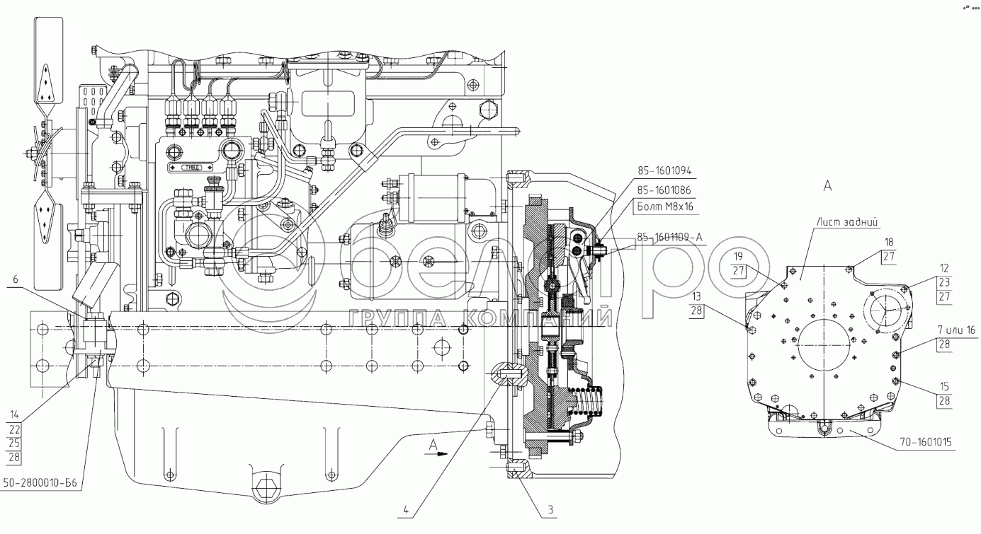 Каталог запасных частей к технике: МТЗ 923.5. Установка двигателя