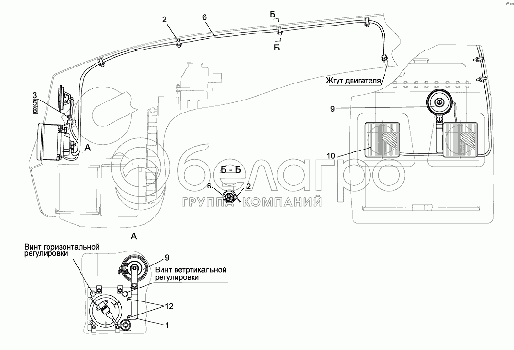 Каталог запасных частей к технике: МТЗ 923.5. Установка фар дорожных