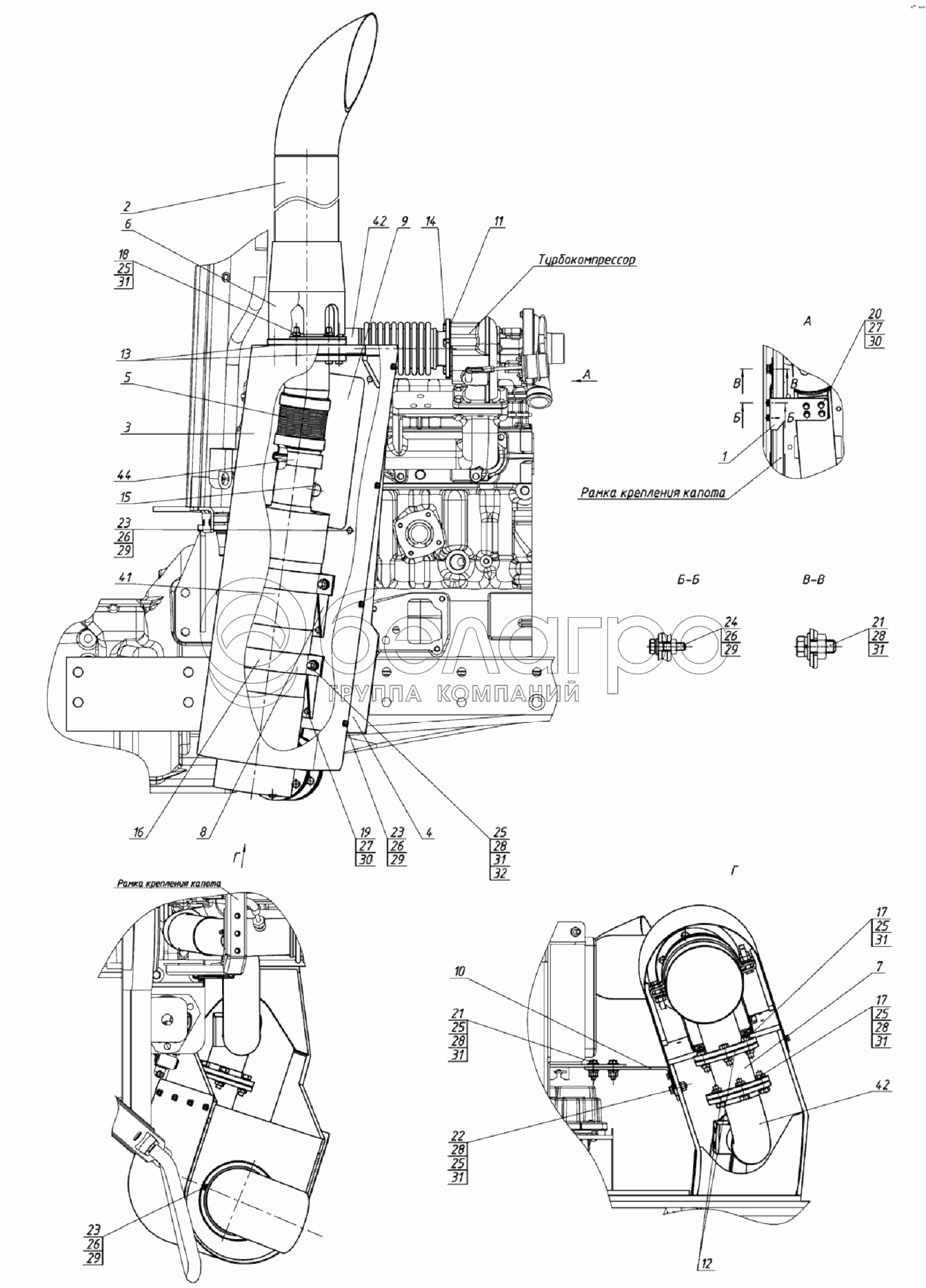 Каталог запасных частей к технике: МТЗ 923.5. Установка глушителя
