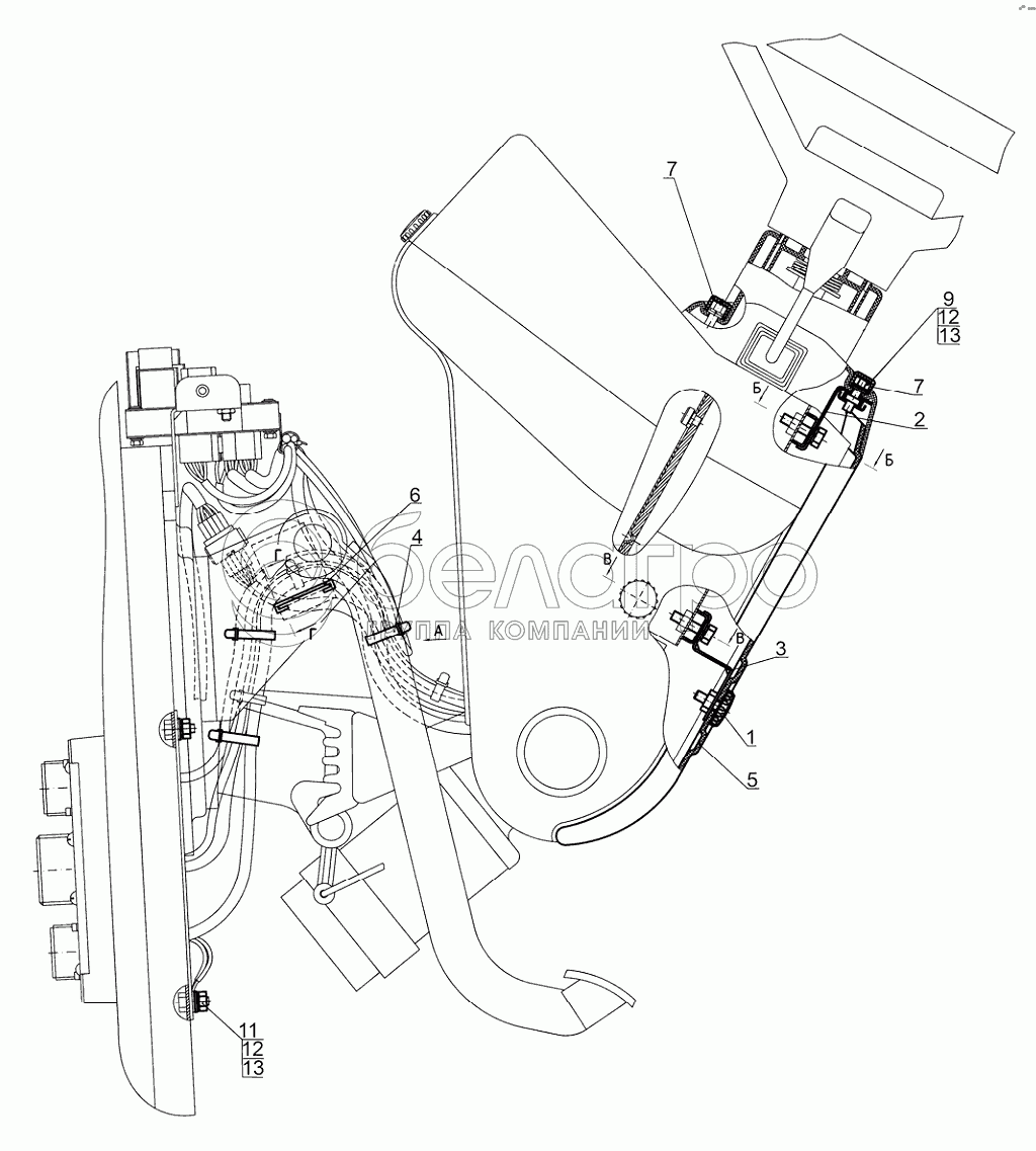 Каталог запасных частей к технике: МТЗ 923.5. Установка щитка приборов