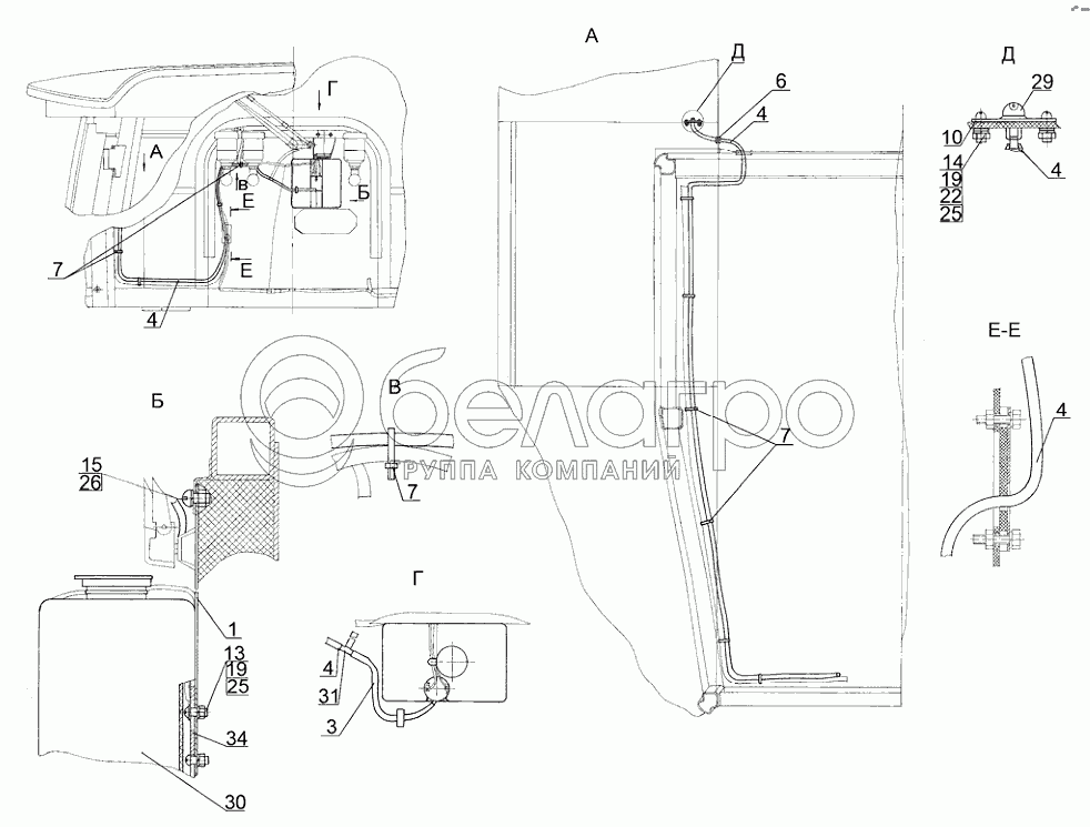 Каталог запасных частей к технике: МТЗ 923.5. Установка стеклоомывателя