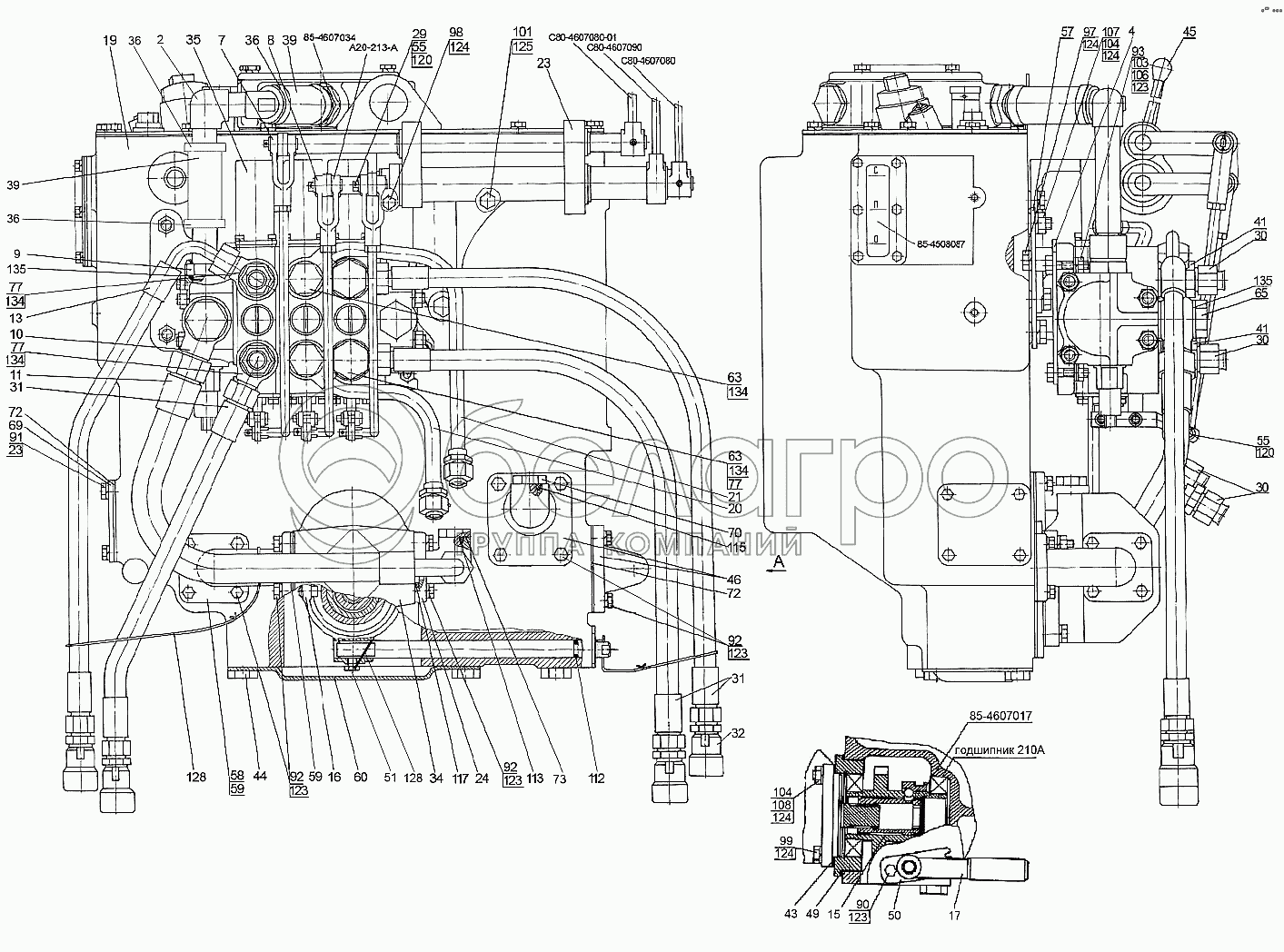 Каталог запасных частей к технике: МТЗ 92П. Корпус гидросистемы Р85-4600015-04. Гидроагрегаты и арматура