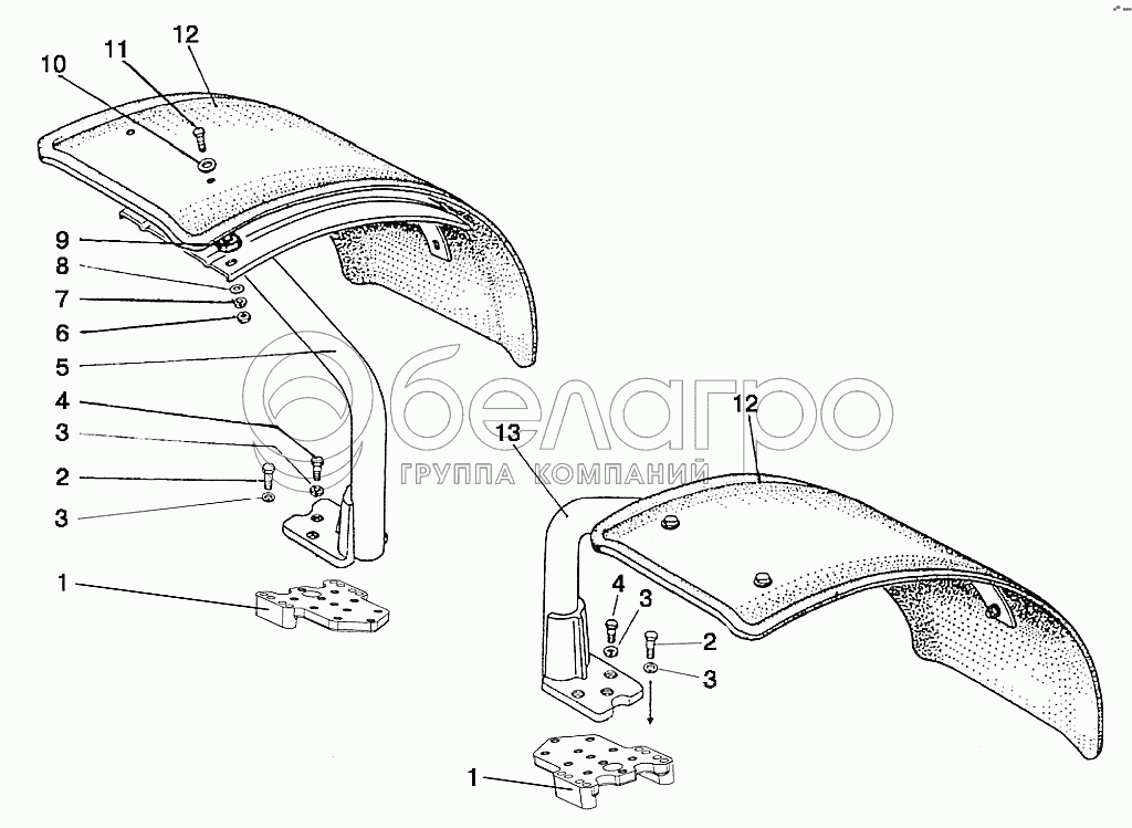 Каталог запасных частей к технике: МТЗ 92П. Крылья передние