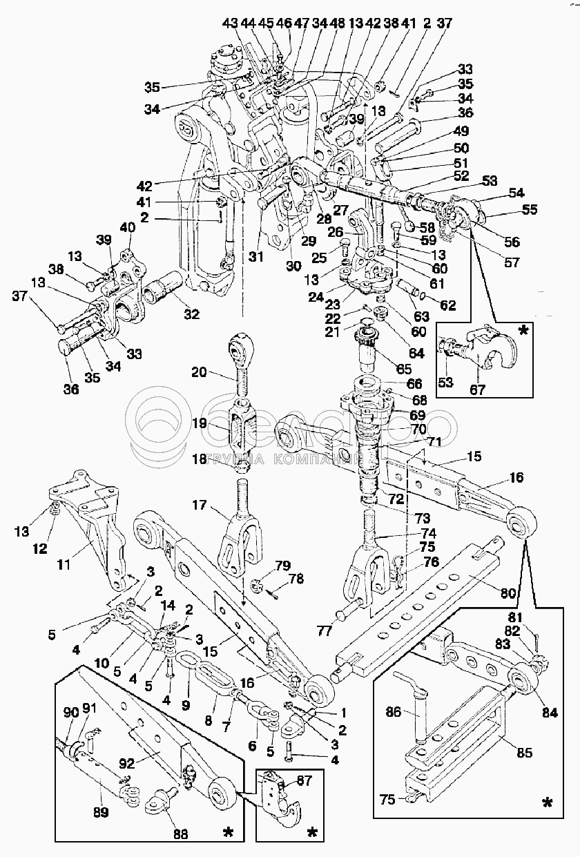 Каталог запасных частей к технике: МТЗ 92П. Механизм задней навески (с гидроподъемником)