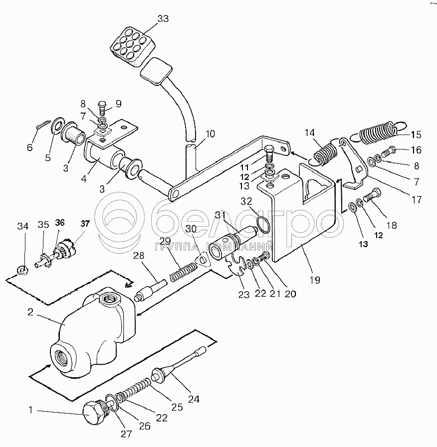 Каталог запасных частей к технике: МТЗ 92П. Педальное управление блокировкой дифференциала заднего мост
