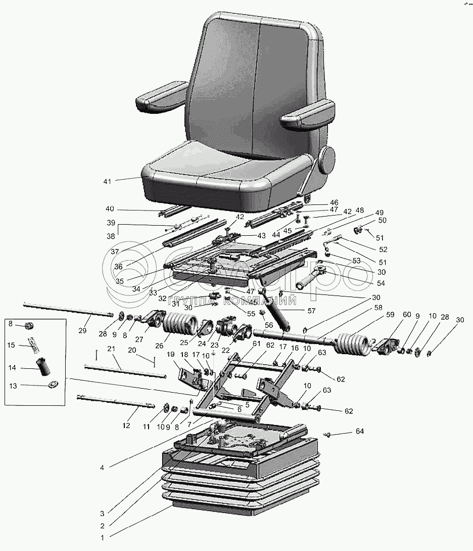 Каталог запасных частей к технике: МТЗ 92П. Сиденье оператора