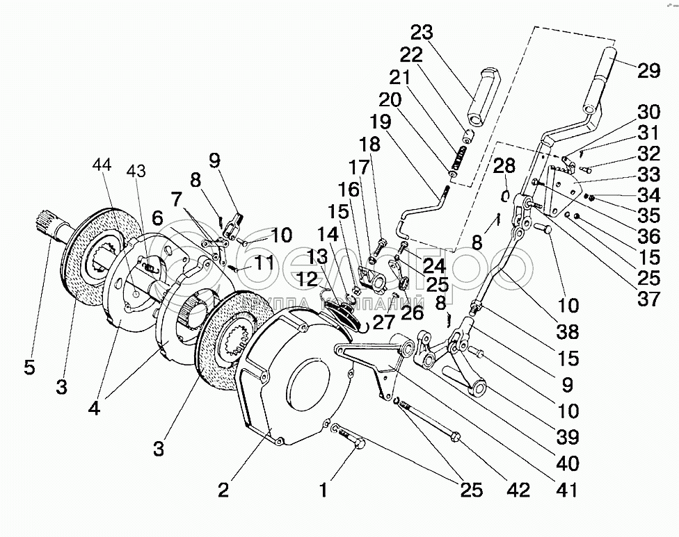 Каталог запасных частей к технике: МТЗ 92П. Тормоз стояночный. Управление стояночным тормозом
