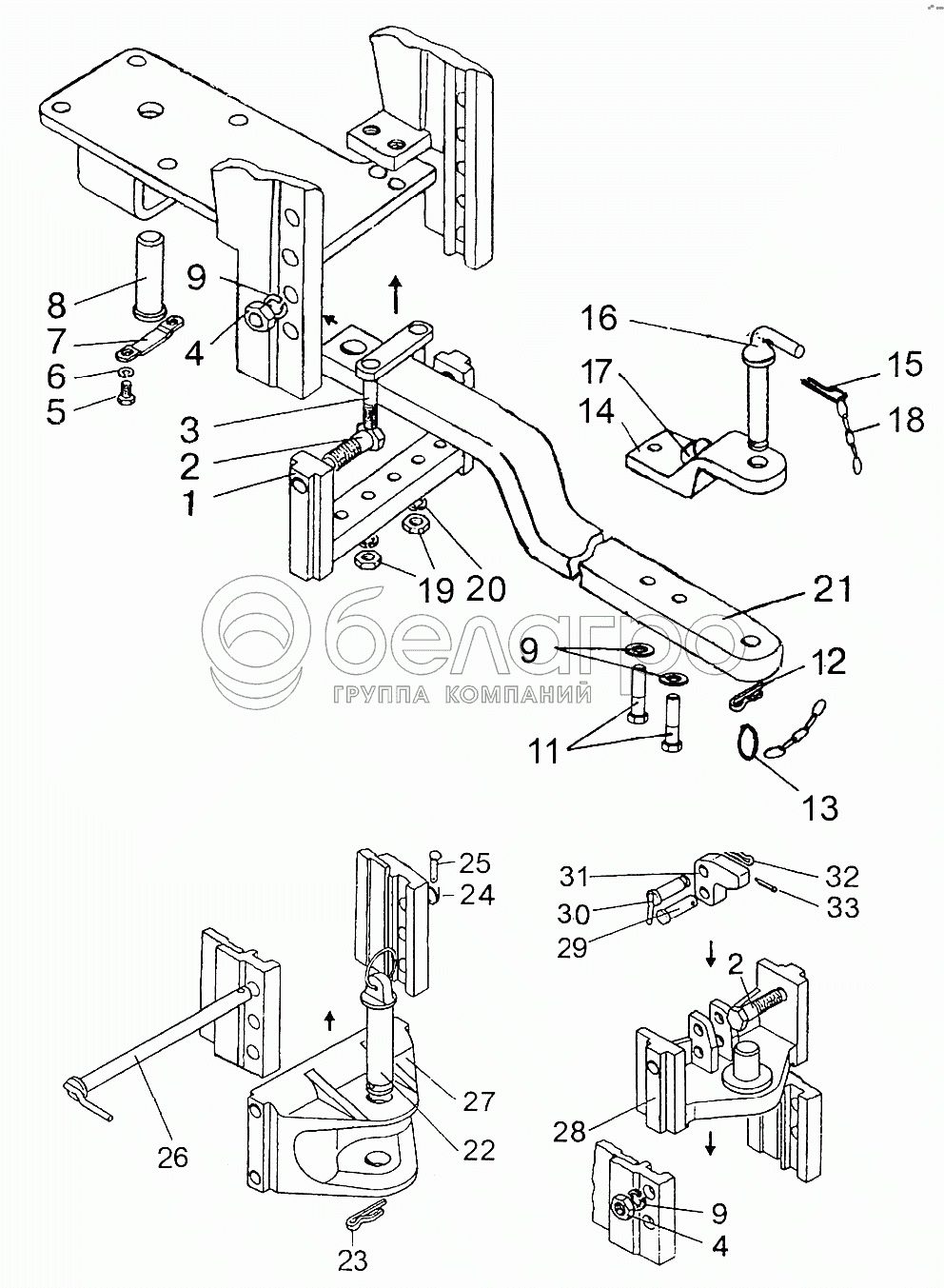Каталог запасных частей к технике: МТЗ 92П. Тягово-сцепное устройство (варианты комплектации)