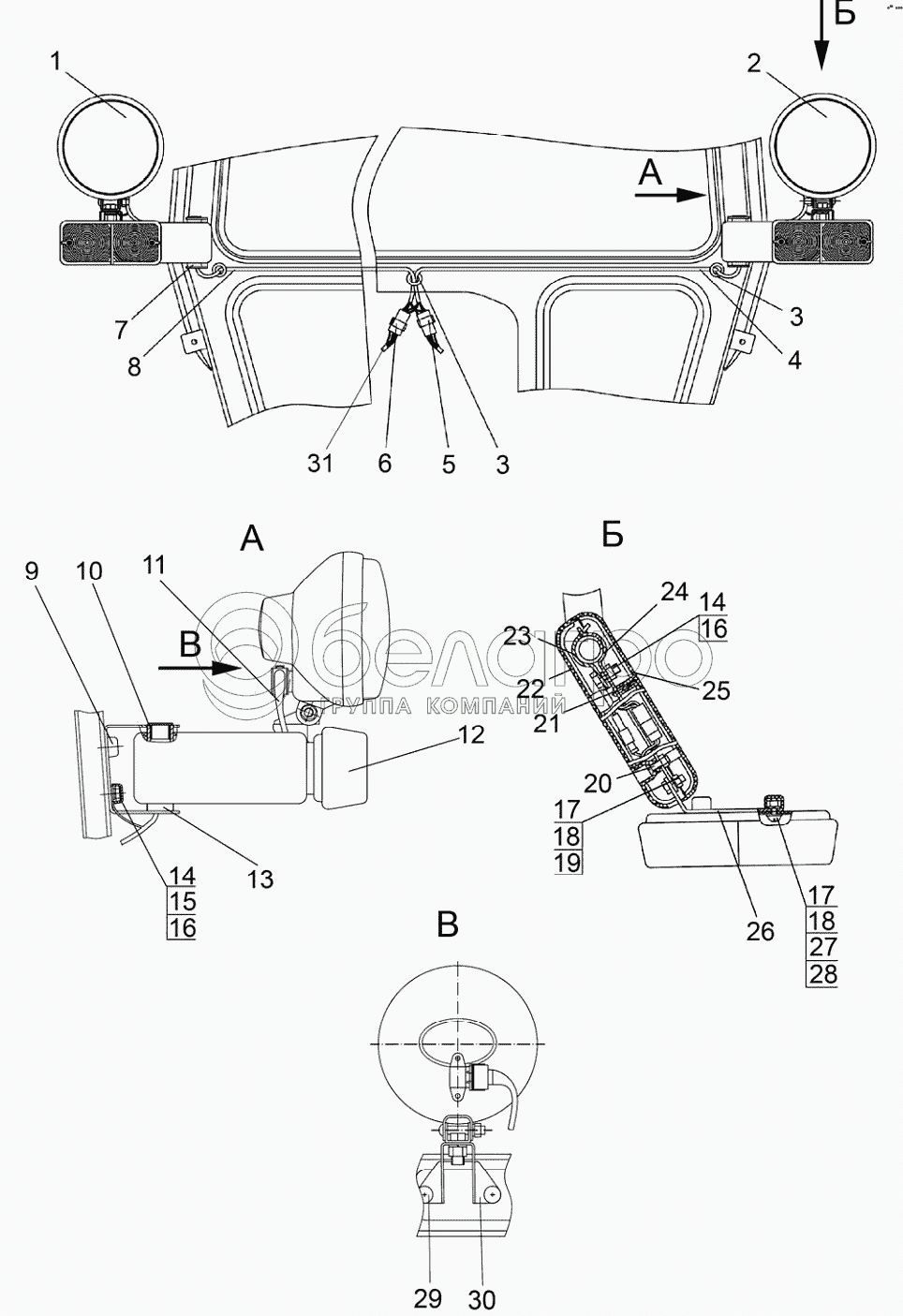 Каталог запасных частей к технике: МТЗ 92П. Установка фонарей передних