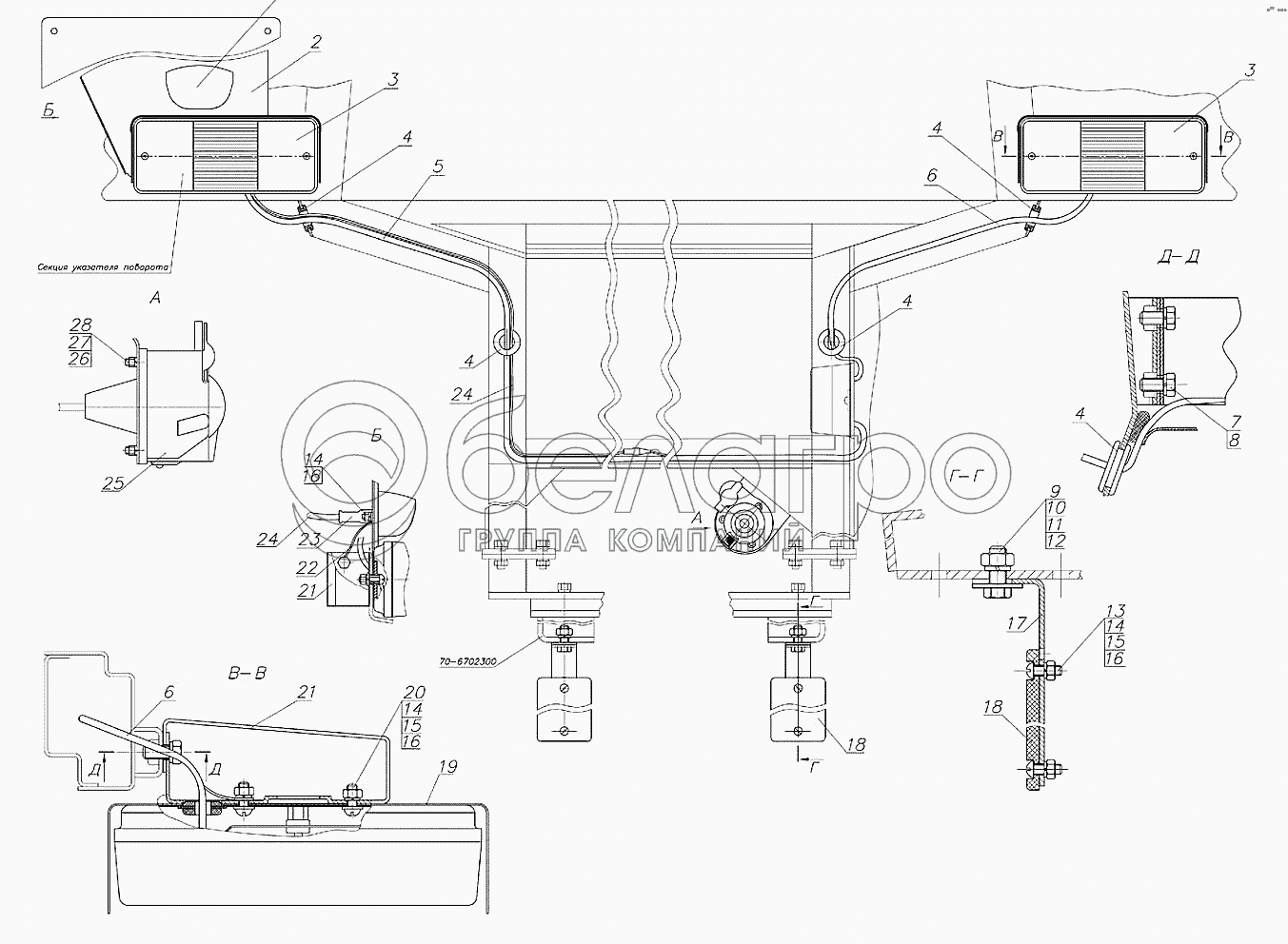 Каталог запасных частей к технике: МТЗ 92П. Установка фонарей задних