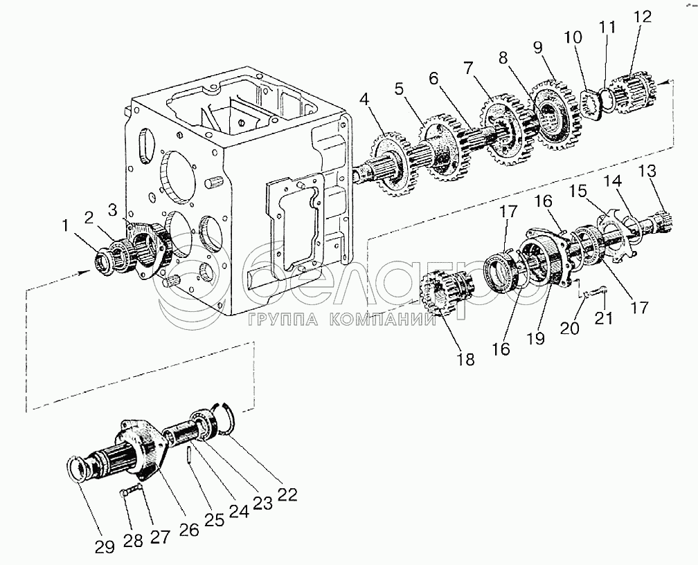 Каталог запасных частей к технике: МТЗ 92П. Вал промежуточный. Вал внутренний