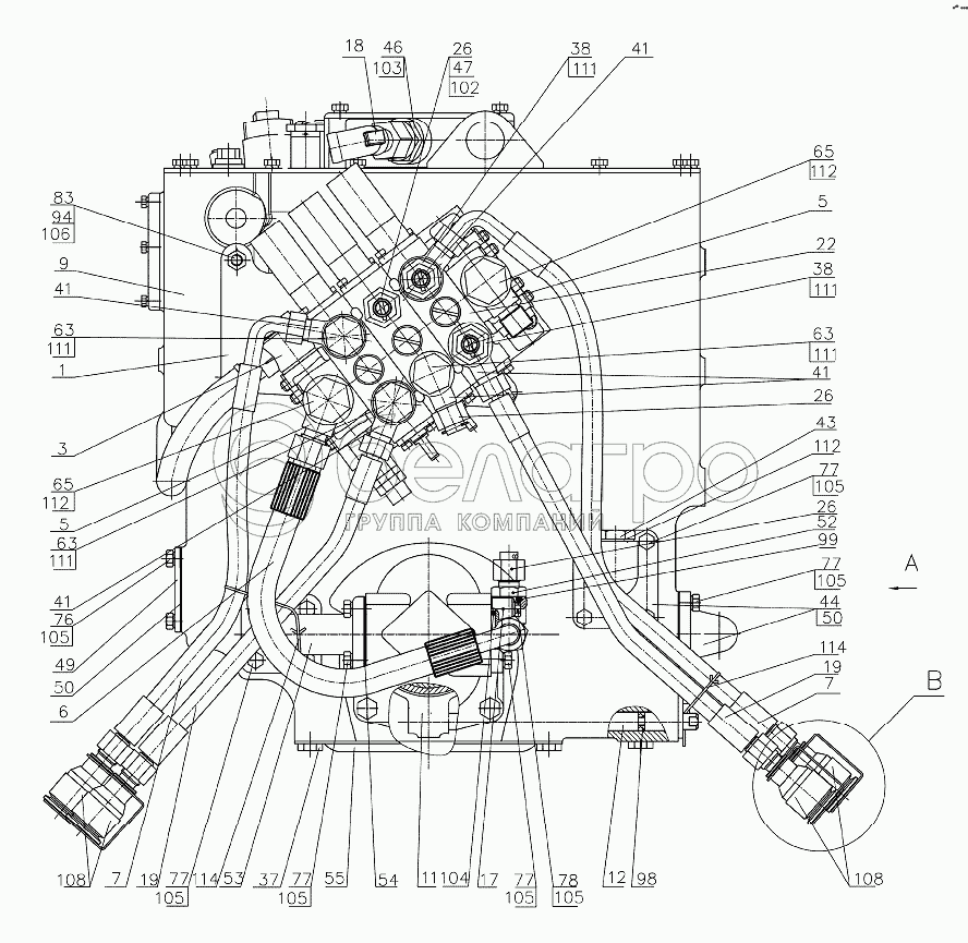 Каталог запасных частей к технике: МТЗ 952.5. Корпус гидросистемы Р920-4600015