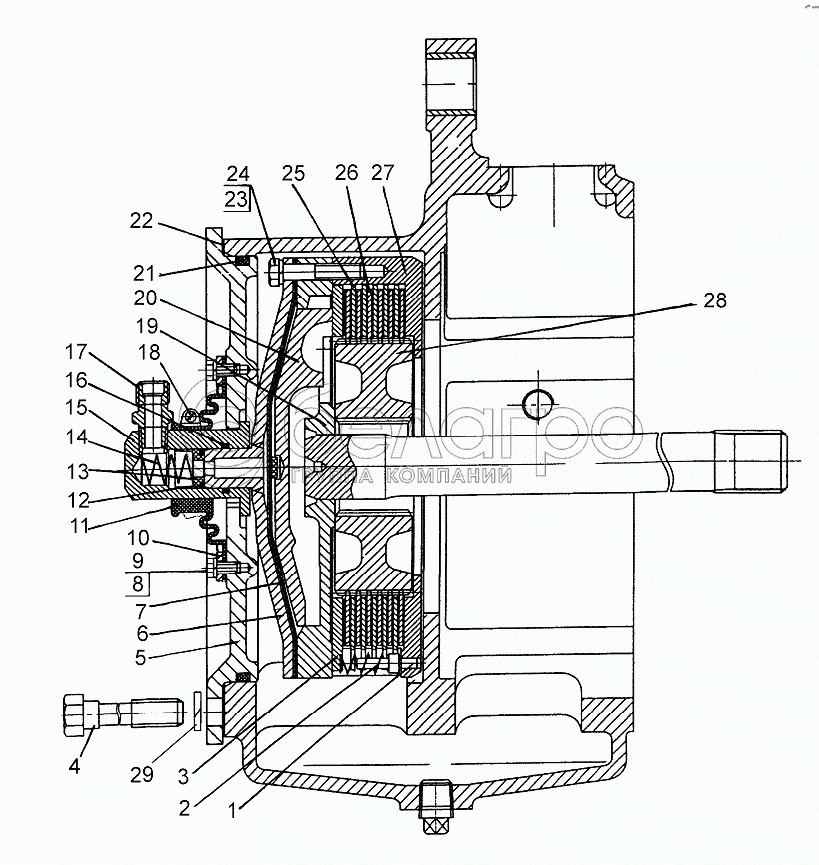 Каталог запасных частей к технике: МТЗ 952.5. Механизм блокировки дифференциала «мокрого» типа