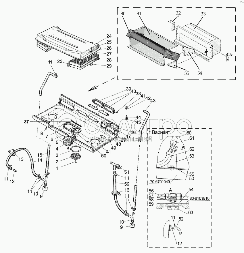 Каталог запасных частей к технике: МТЗ 952.5. Отопитель