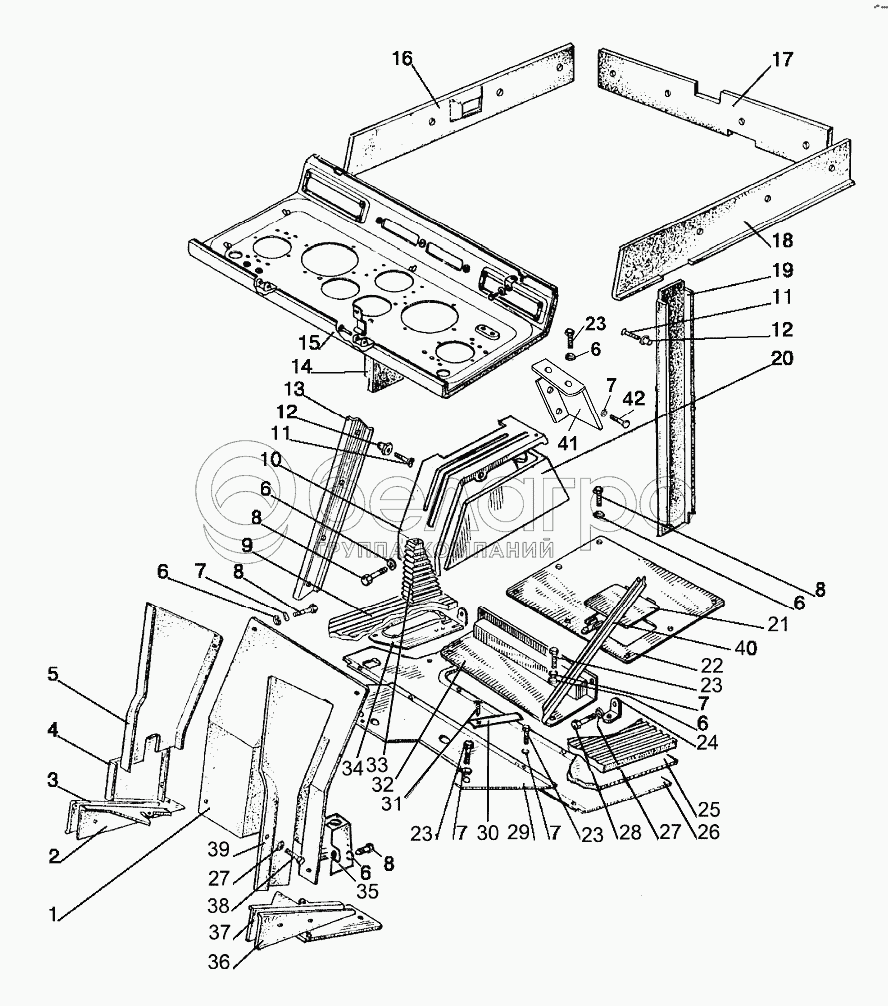 Каталог запасных частей к технике: МТЗ 952.5. Пол кабины