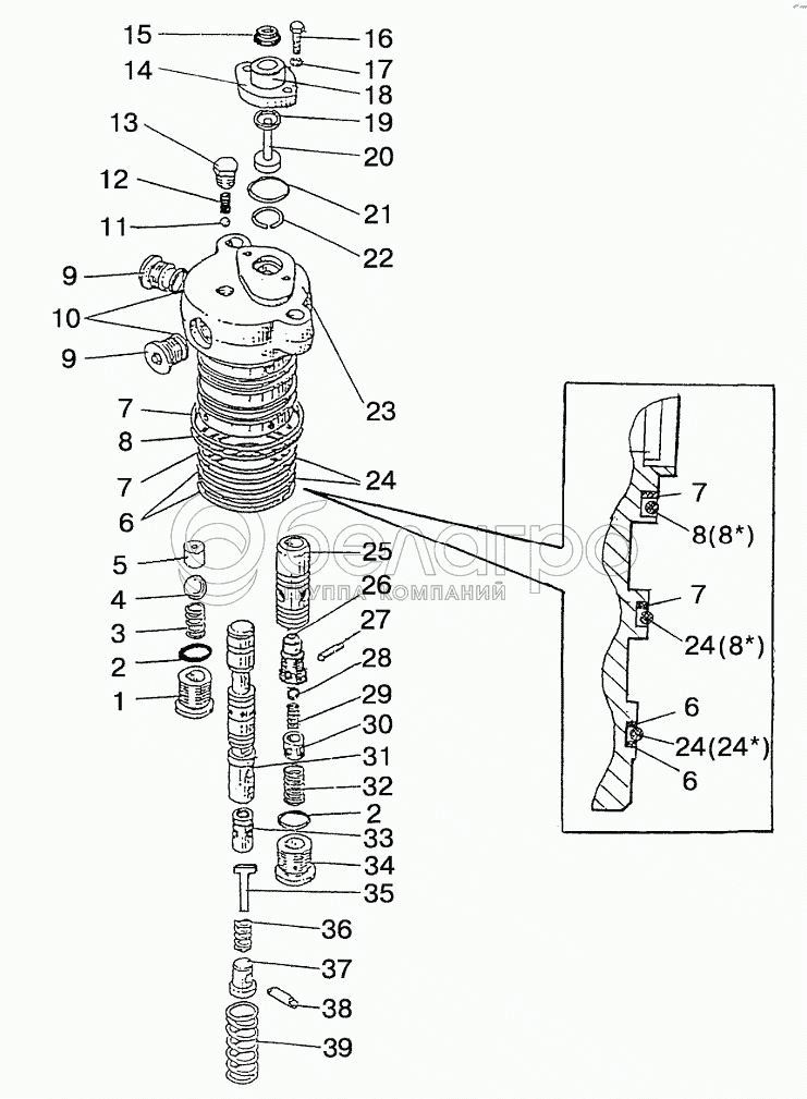 Каталог запасных частей к технике: МТЗ 952.5. Распределитель гидроподъемника