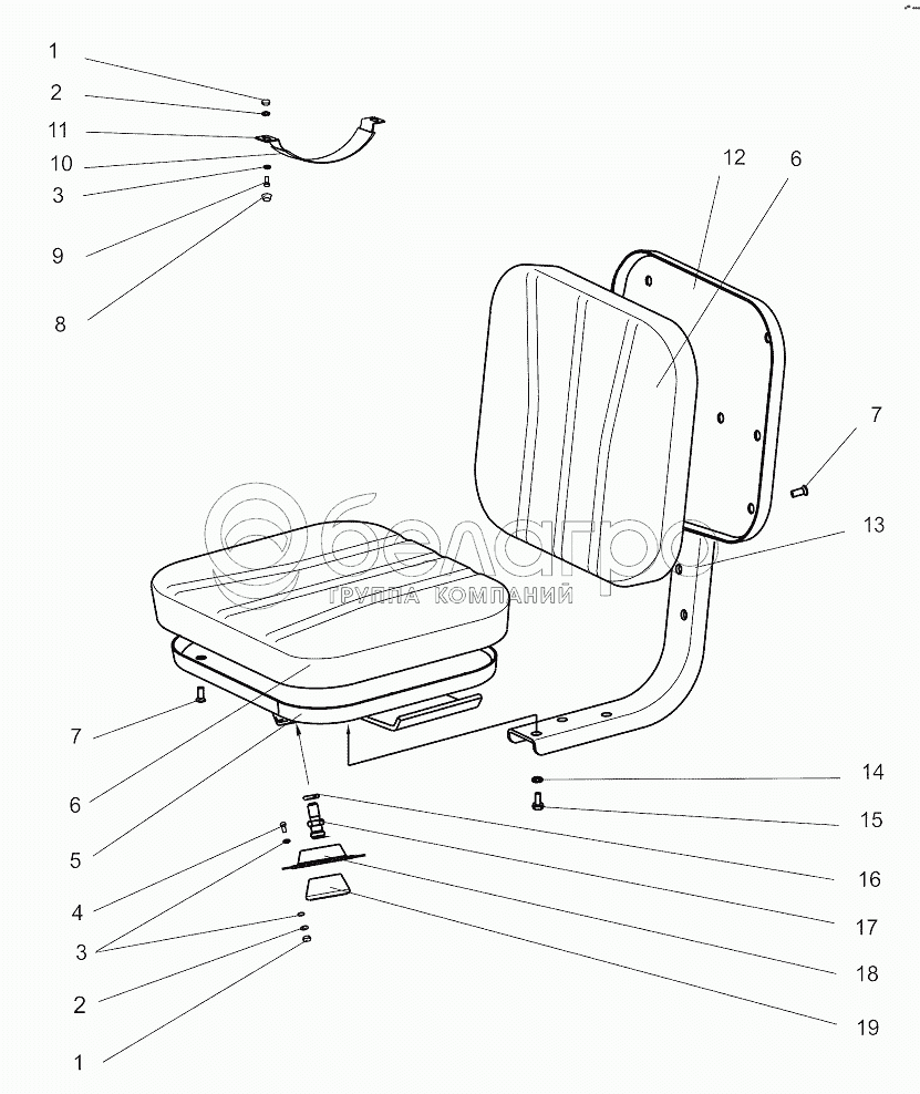 Каталог запасных частей к технике: МТЗ 952.5. Сиденье дополнительное