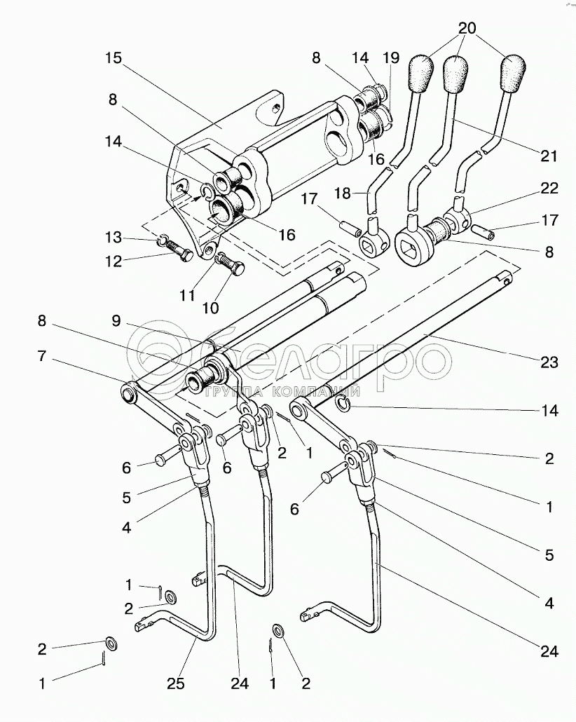 Каталог запасных частей к технике: МТЗ 952.5. Управление гидрораспределителем РП 70