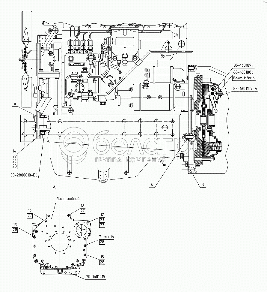 Каталог запасных частей к технике: МТЗ 952.5. Установка двигателя