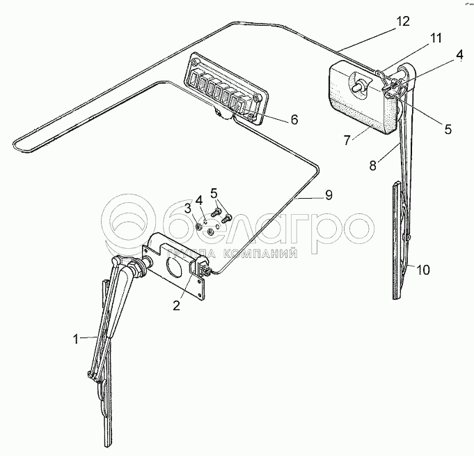 Каталог запасных частей к технике: МТЗ 952.5. Установка стеклоочистителя