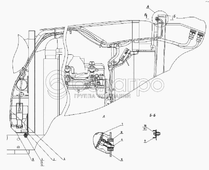 Каталог запасных частей к технике: МТЗ 952.5. Установка стеклоомывателя