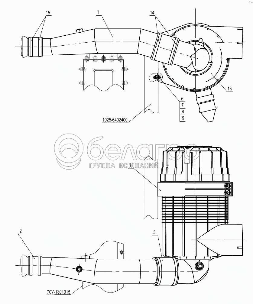 Каталог запасных частей к технике: МТЗ 952.5. Установка воздухоочистителя