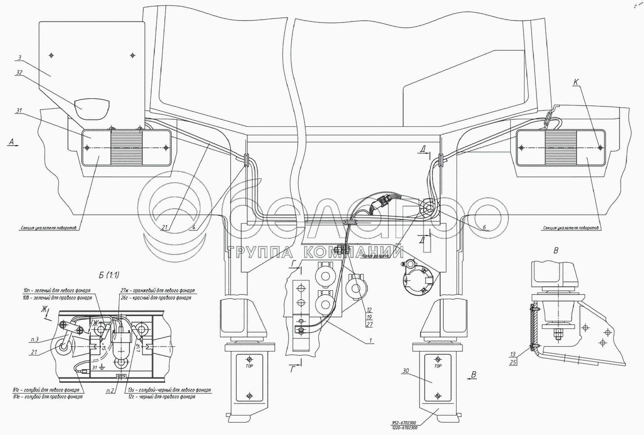 Каталог запасных частей к технике: МТЗ БЕЛАРУС 1025.7. Установка фонарей задних 920.6-3700060