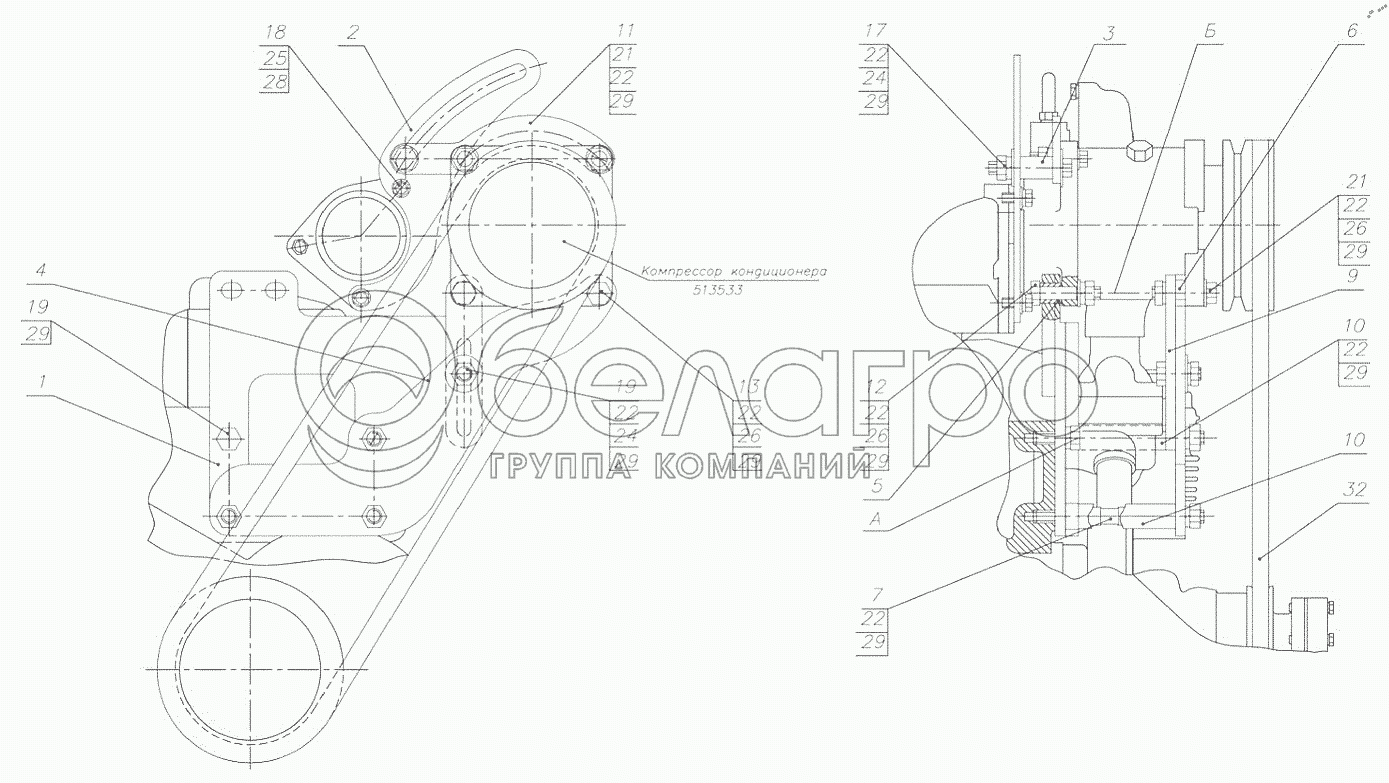 Каталог запасных частей к технике: МТЗ БЕЛАРУС 1025.7. Установка компрессора 952.6-8114010
